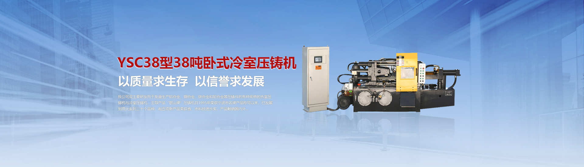 我司現(xiàn)主要研發(fā)用于批量加工生產(chǎn)鋁合金、銅合金、鋅合金和鉛合金等壓鑄件的各種型號(hào)規(guī)格的熱室/冷室壓鑄機(jī),主導(dǎo)產(chǎn)品“銀山牌”壓鑄機(jī)自1995年榮獲寧波市名牌產(chǎn)品稱號(hào)以來(lái),已發(fā)展到兩大系列二十個(gè)品種,有五項(xiàng)產(chǎn)品曾榮獲省、市科技進(jìn)步獎(jiǎng),產(chǎn)品暢銷國(guó)內(nèi)外。歷年來(lái)向用戶提供了8000余臺(tái)設(shè)備,為中國(guó)的壓鑄工業(yè)發(fā)展作出了重要的貢獻(xiàn),企業(yè)獲得了很高的信譽(yù)度。